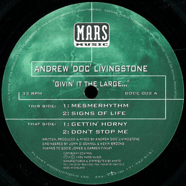 Andrew 'Doc' Livingstone* - Givin' It The Large... DOCC 002 (12") (Very Good Plus (VG+))