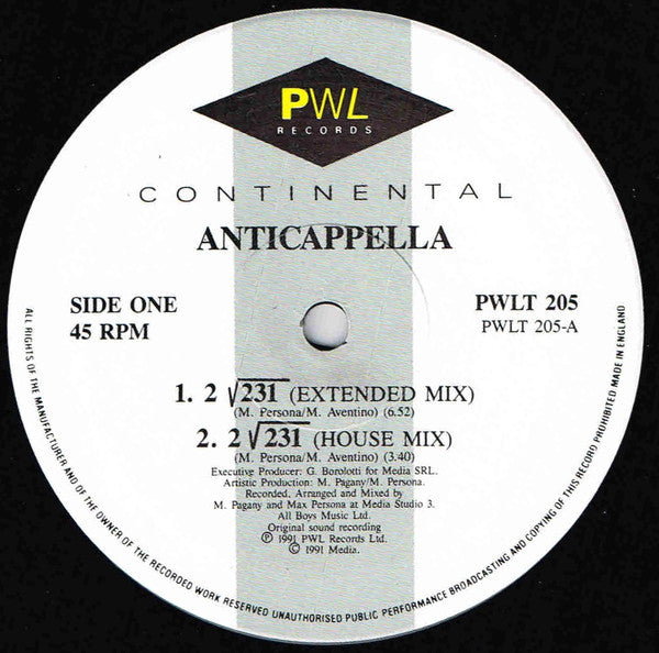 Anticappella - 2√231 PWLT 205 (12", Single) (Very Good (VG))