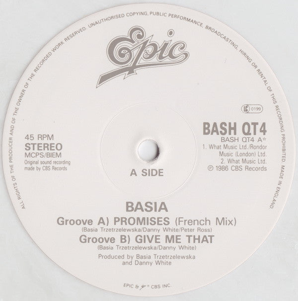 Basia - Promises / Give Me That BASH QT4 (10", Single, Ltd, Whi) (Very Good Plus (VG+))