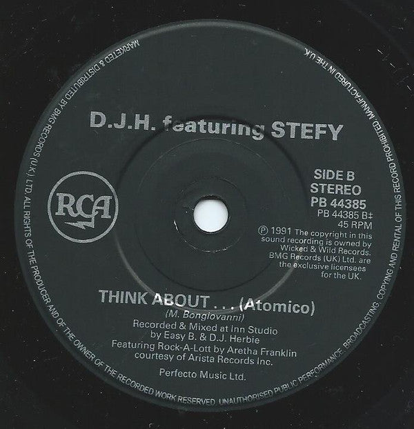 D.J.H. Featuring Stefy* - Think About ... PB 44385 (7") (Very Good Plus (VG+))
