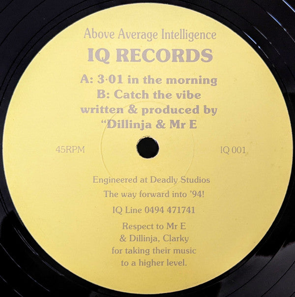 Dillinja & Mr. E - 3:01 In The Morning / Catch The Vibe IQ 001 (12") (Very Good (VG))