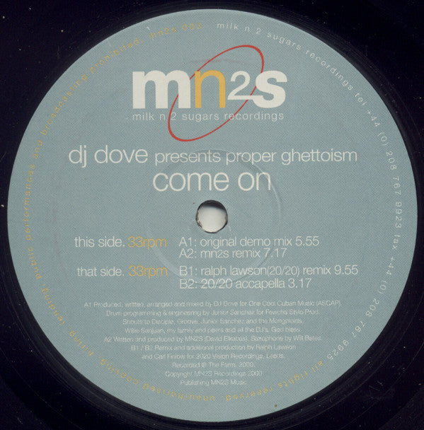 DJ Dove Presents Proper Ghettoism - Come On mn2s 003 (12") (Near Mint (NM or M-))