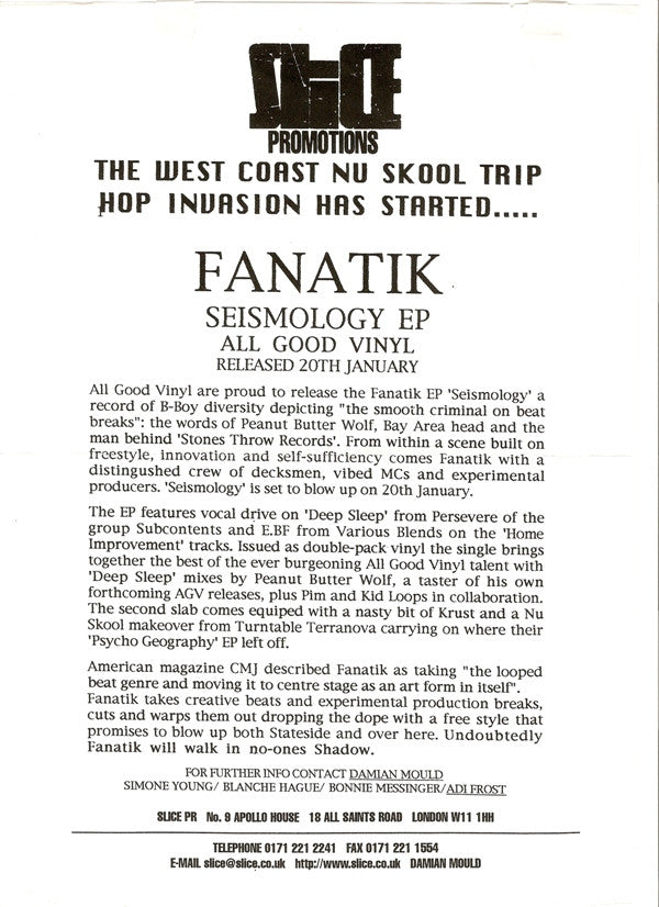 Fanatik - Seismology AGV 009 (2x12", Promo) (Very Good Plus (VG+))