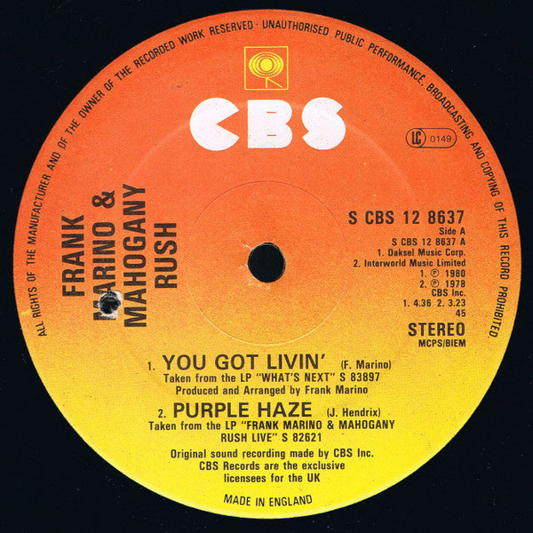 Frank Marino & Mahogany Rush - Fourth Degree Burns S CBS 12 8637, 12-8637 (12", EP, Comp, Ltd) (Very Good (VG))