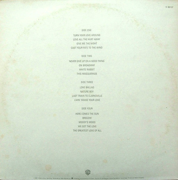 © 1981 A Warner Bros. Recording. Distributed by WEA Records Ltd. A Warner Communications Company ℗ Warner Bros. Records Inc. 1976 (B4, D2); 1977 (C2); 1978 (B2, D4, D5); 1979 (C1, C4); 1980 (A3, D3); 1981 (A1, B1) ℗ Arista Records Inc. 1981 (A2) ℗ CTI Records 1972 (B3); 1976 (A4) ℗ A&M Records Inc. 1969 (C3); 1970 (D1)