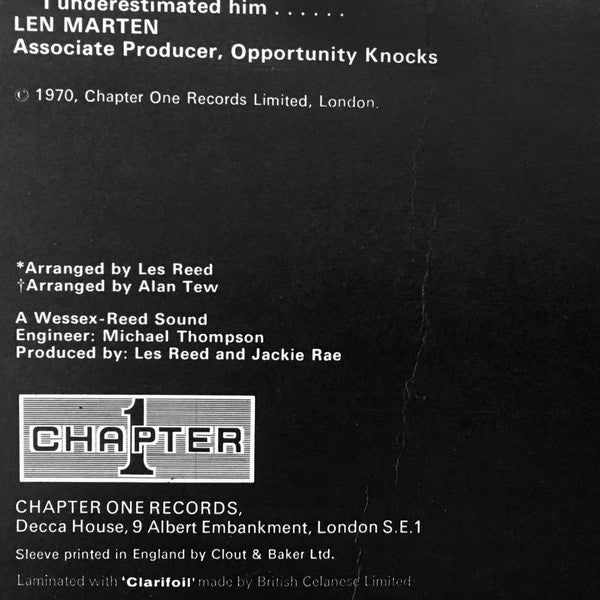 A Wessex-Reed Sound Chapter 1 Records, Decca House, London SE1. Laminated with 'Clarifoil' made by Brtish Celnese Limited.