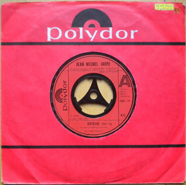 From the Polydor LP "Oxygene" 2310555 Made in England. ℗ 1977 Disques Motors. [r=680703 has red injection labels, solid centre, picture sleeve. [r=8479881 has silver injection labels. [r=9374748 has red injection labels, solid centre, company sleeve.