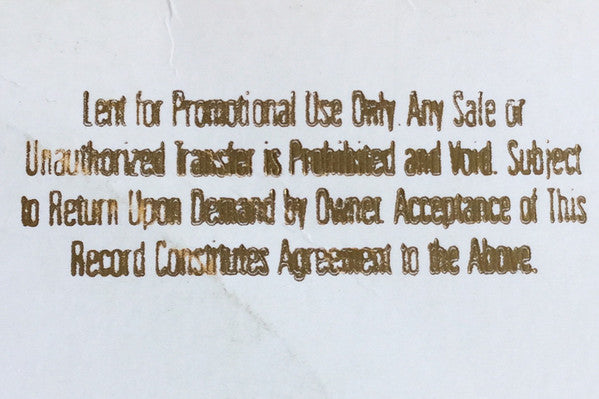 NOTE:Front RH Cover:- Lent for Promotional Use Only. Any Sale or Unauthorised Transfer is Prohibited and Void. Subject to Return Upon Deman by Owner. Acceptance of This Record Constitutes Agreement to the Above (Gold lettering)