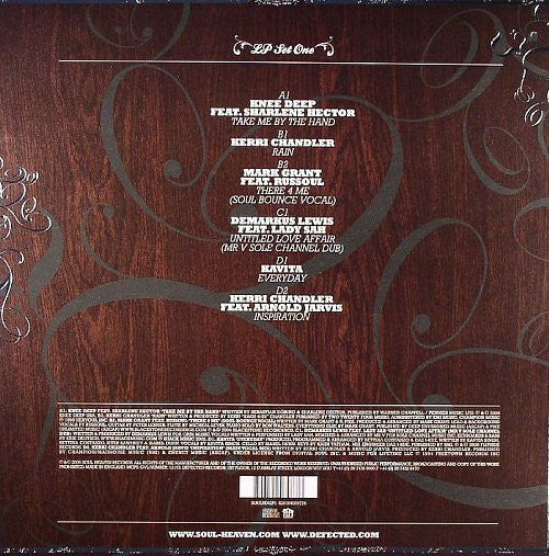 Deep soulful grooves & jackin' beats. Full main title appears on spine as "Soul Heaven Presents Kerri Chandler & Dennis Ferrer (LP Set One)". Printed circle on cover says "LP Set One Of Two". Full title on D2 only in credit section's fine print.