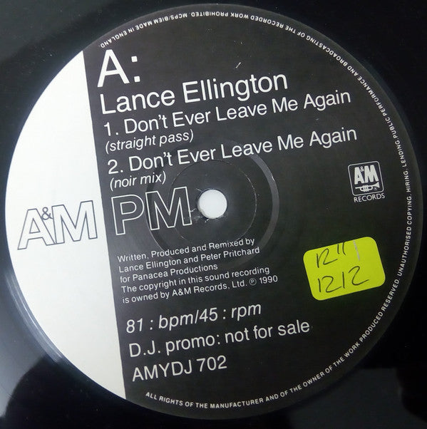 Lance Ellington - Don't Ever Leave Me Again AMYDJ 702 (12", Promo) (Very Good Plus (VG+))