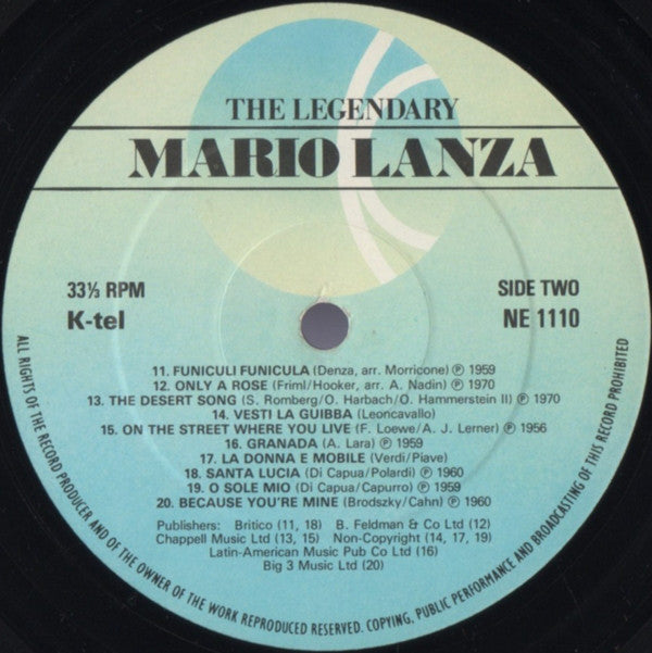 Mario Lanza - The Legendary Mario Lanza NE 1110 (LP, Comp) (Near Mint (NM or M-))