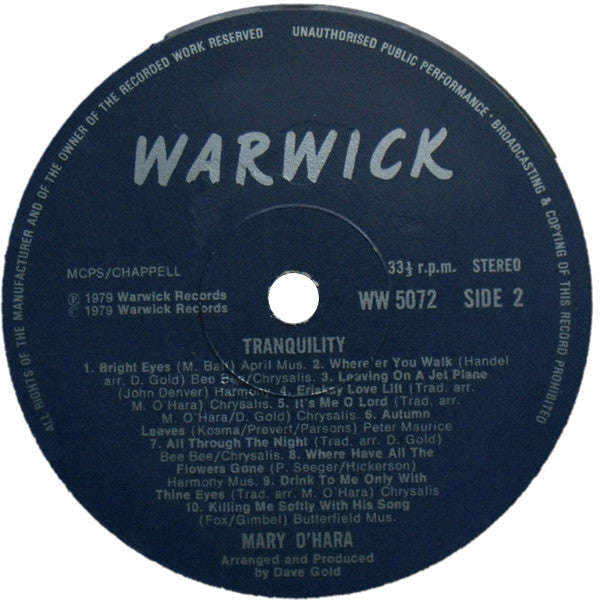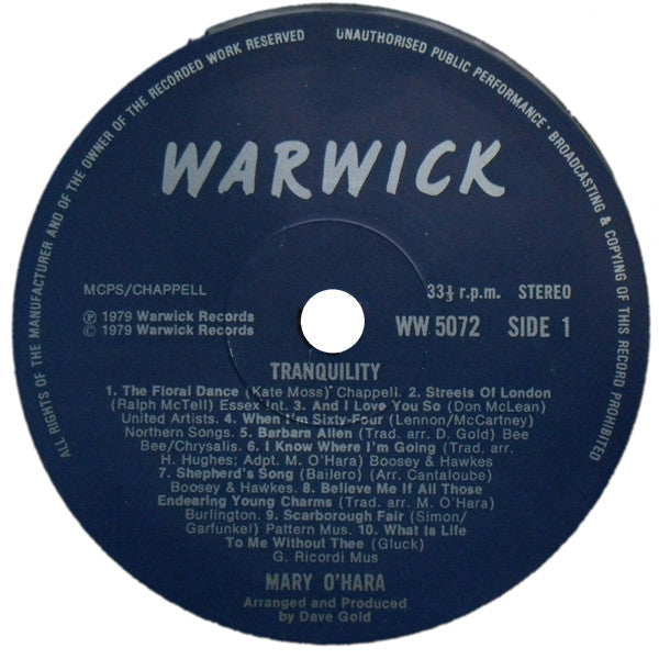 Mary O'Hara - Tranquility (20 Songs Of Life) WW 5072 (LP, Album) (Very Good Plus (VG+))