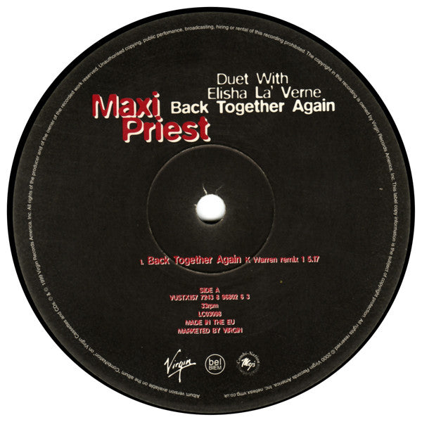 Maxi Priest Duet With Elisha La 'Verne* - Back Together Again VUSTXDJ 157 (12", Promo, Yel) (Mint (M))