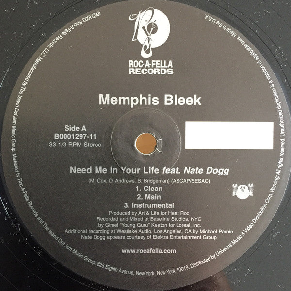 Memphis Bleek - Need Me In Your Life / We Ballin' B0001297-11 (12") (Mint (M))