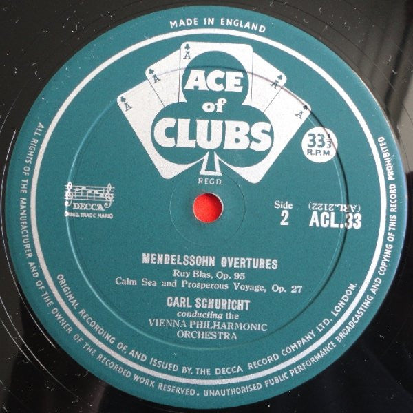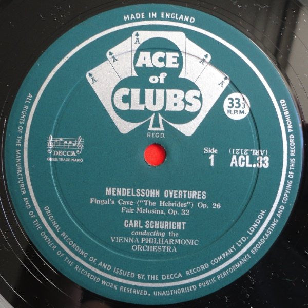 Mendelssohn* - Vienna Philharmonic Orchestra* - Carl Schuricht - Mendelssohn Overtures ACL 33, ACL.33 (LP, Mono) (Very Good Plus (VG+))
