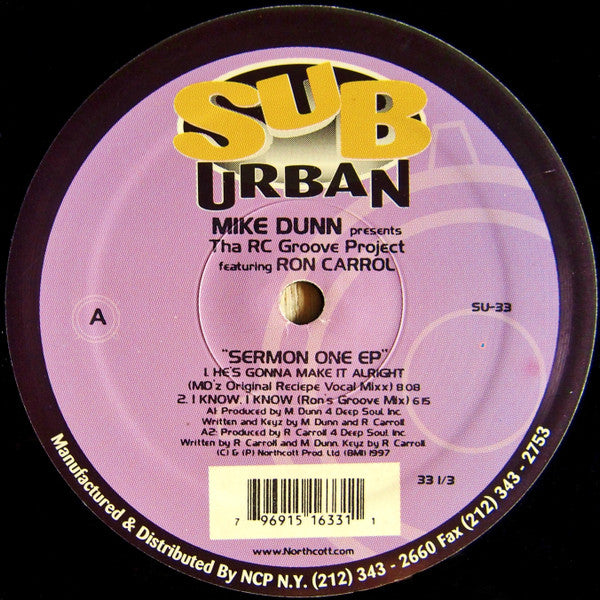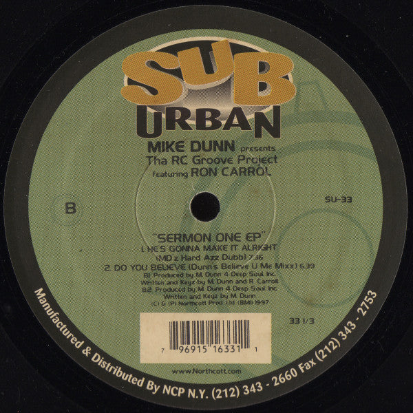 Mike Dunn Presents Tha RC Groove Project* Featuring Ron Carrol* - Sermon One EP SU-33 (12", EP) (Very Good Plus (VG+))