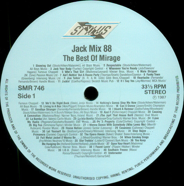 Mirage - Jack Mix 88 - The Best Of Mirage - 88 Non Stop Hits SMR 746 (LP, Comp) (Very Good Plus (VG+))