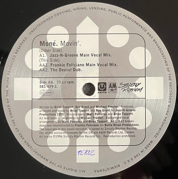Moné - Movin' (Jazz-N-Groove / Frankie Feliciano Mixes) 581 439-1 (12", Rec) (Very Good (VG))