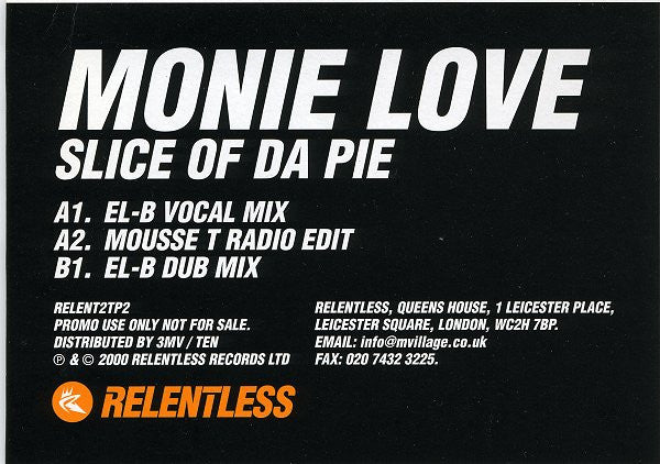 Monie Love - Slice Of Da Pie RELENT2TP2 (12", Promo) (Very Good (VG))