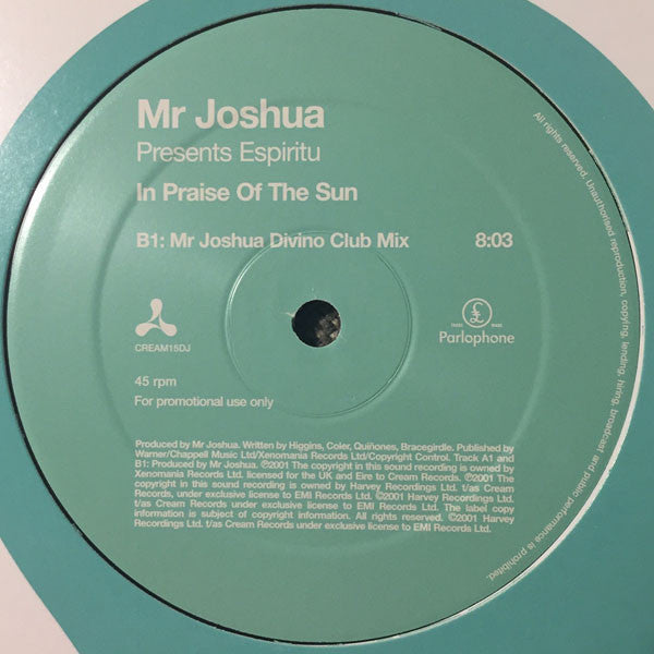 Mr. Joshua Presents Espiritu - In Praise Of The Sun CREAM15DJ (2x12", Promo) (Very Good Plus (VG+))