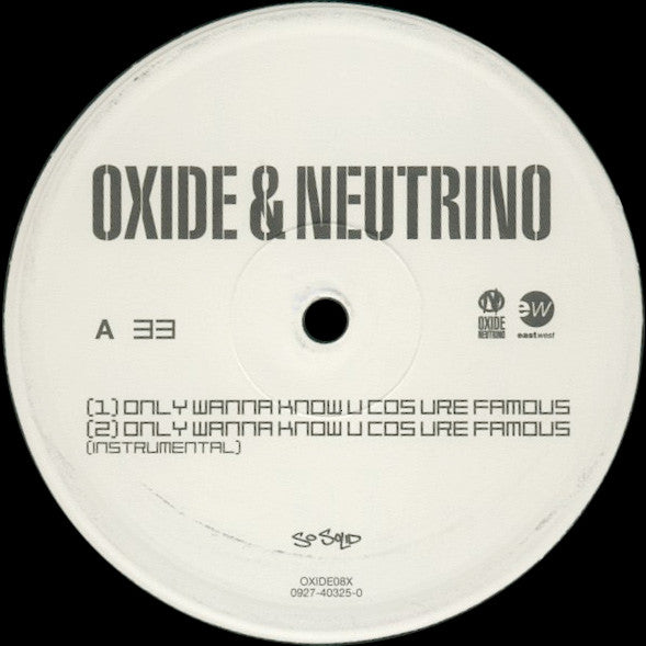 Oxide & Neutrino - Only Wanna Know U Cos Ure Famous 0927-40325-0, OXIDE08X (12") (Very Good Plus (VG+))