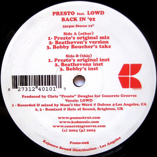 Presto - Back In '92 PUMA-008 (12") (Mint (M))