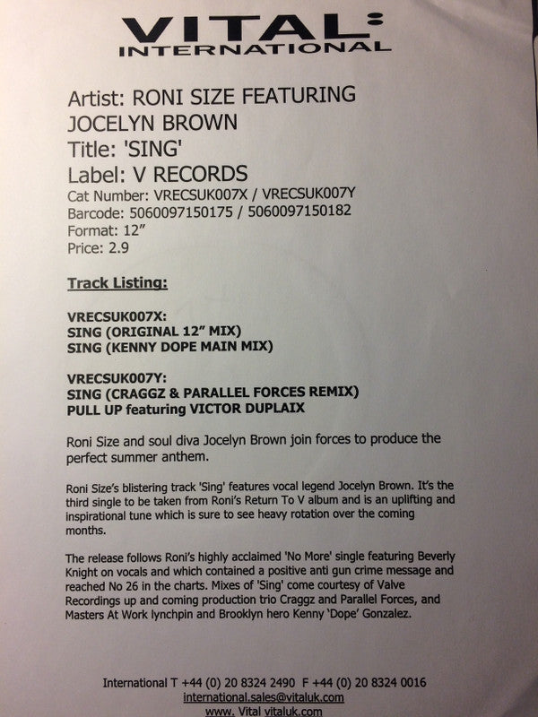 Roni Size - Sing VRECSUK007X (12", W/Lbl) (Very Good Plus (VG+))