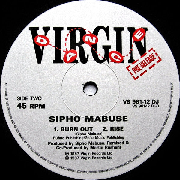 Sipho Mabuse - Burn Out VS 981-12 DJ (12", Promo) (Good (G))