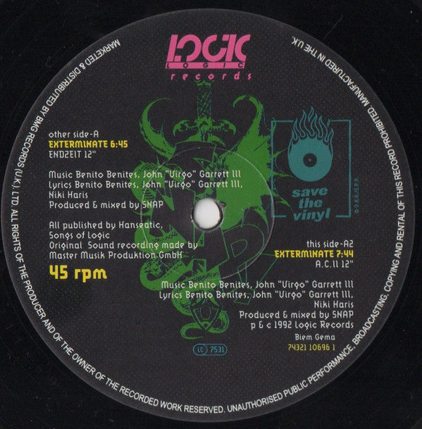 Snap! Featuring Niki Haris - Exterminate! 74321 10696 1, 74321 106961 (12", Single) (Mint (M))