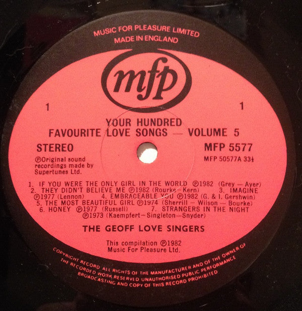 The Geoff Love Singers - Your Hundred Favourite Love Songs - Volume 5 MFP 5577 (LP, Comp) (Very Good Plus (VG+))