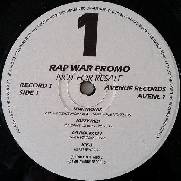 Various - Rap War Promo AVENL 1 (2xLP, Comp, Promo) (Very Good (VG))