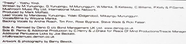 Yothu Yindi - Treaty MUSH85T (12") (Very Good Plus (VG+))